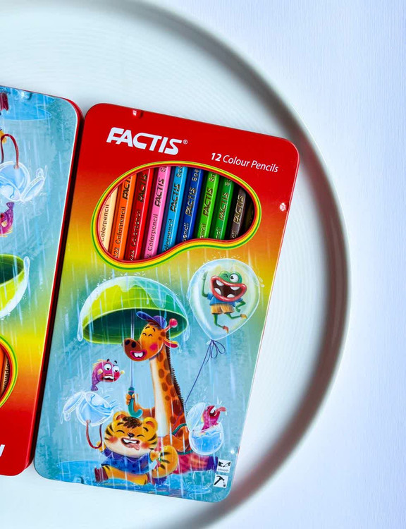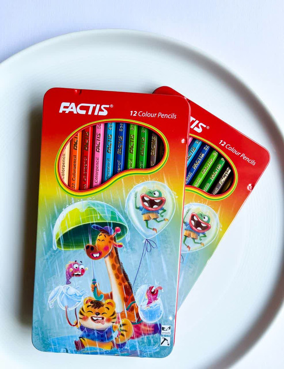 مداد رنگی 12 رنگ فکتیس جعبه فلزی طرح زرافه و دوستان