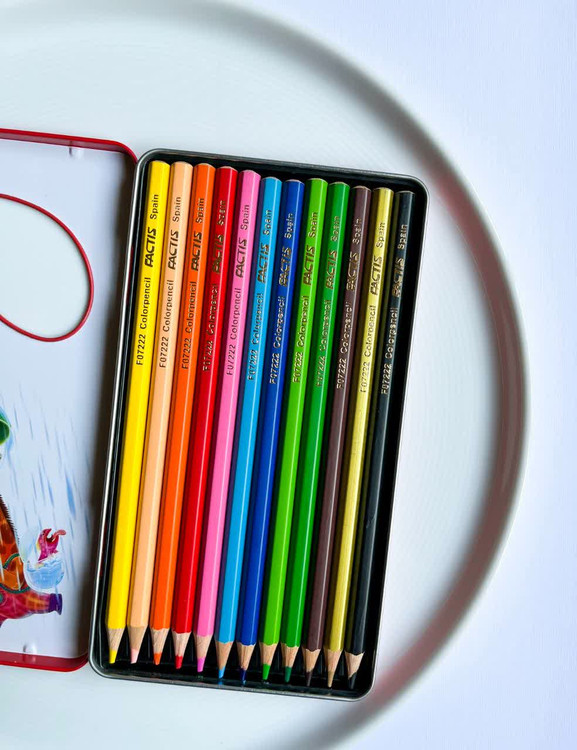 🌈 مدادرنگی 12 رنگ فکتیس جعبه فلزی تخت😎