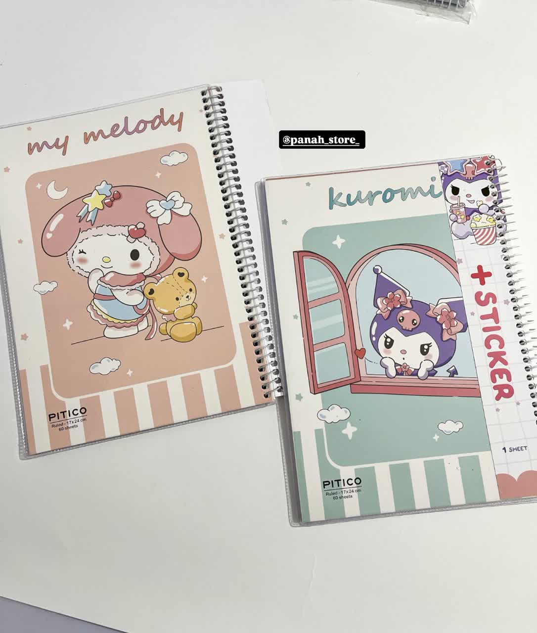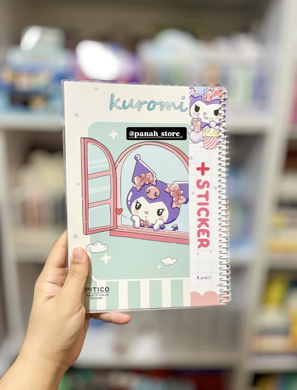 دفتر مجلد ۶۰برگ استیکردار سری کرومی - Kuromi کد ۴ـ کرومی و پنجره ابعاد: ۱۷ ×۲۴سانتیمتر قطع: وزیری تعداد برگ: ۶۰برگ نوع جلد: مجلد نوع صحافی: سیمی صفحه اول دفتر یک ورق استیکر دارد.