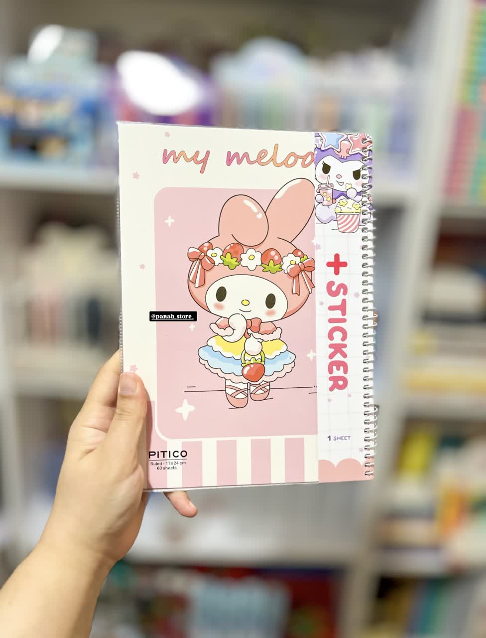 دفتر مجلد ۶۰برگ استیکردار سری کرومی- Kuromi کد ۷ _ ملودی و توت فرنگی ابعاد: ۱۷ ×۲۴سانتیمتر قطع: وزیری تعداد برگ: ۶۰برگ نوع جلد: مجلد نوع صحافی: سیمی صفحه اول دفتر یک ورق استیکر دارد.