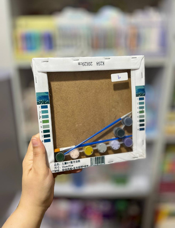 بوم رنگ آمیزی با اعداد شماره دار (بوم آبرنگی) سایز ۲۰×۲۰ همراه رنگ و قلمو کد ۱۰