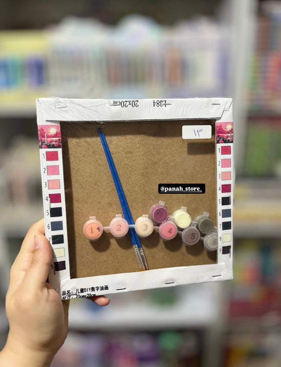 بوم رنگ آمیزی با اعداد شماره دار (بوم آبرنگی) سایز ۲۰×۲۰ همراه رنگ و قلمو کد ۱۳