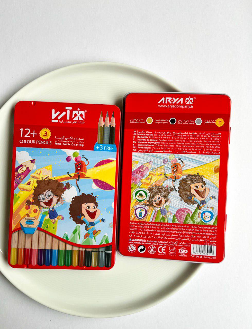 مدادرنگی 3+12 رنگ جعبه فلزی برند آریا